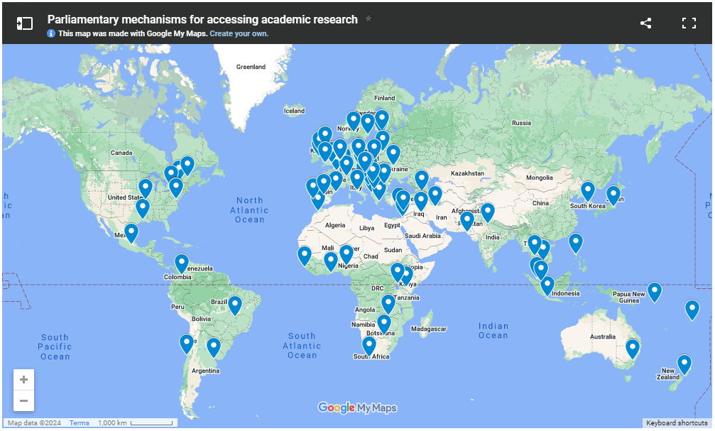 - Explore the global mapping of parliamentary mechanisms for accessing academic research